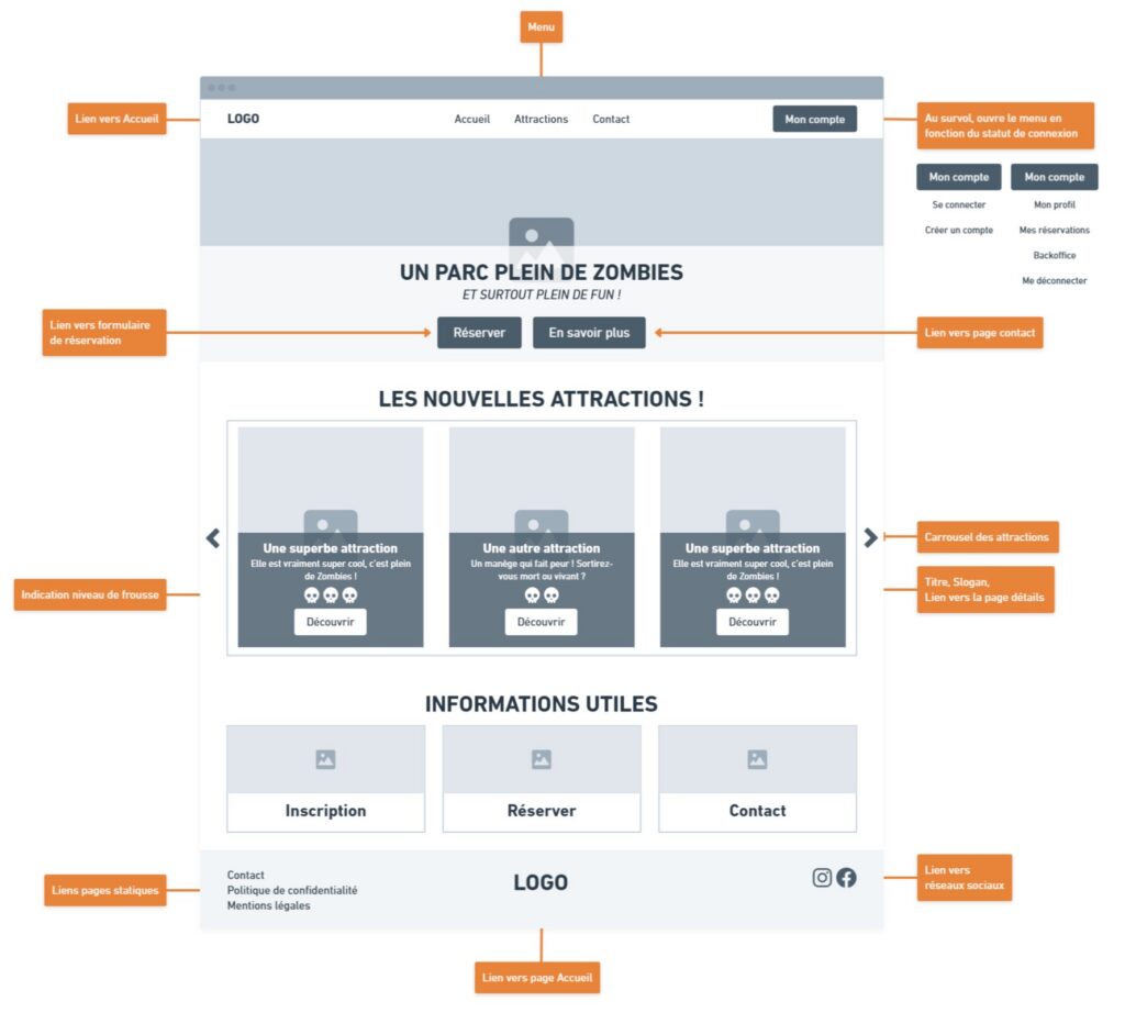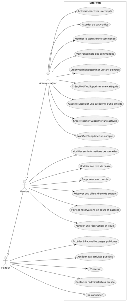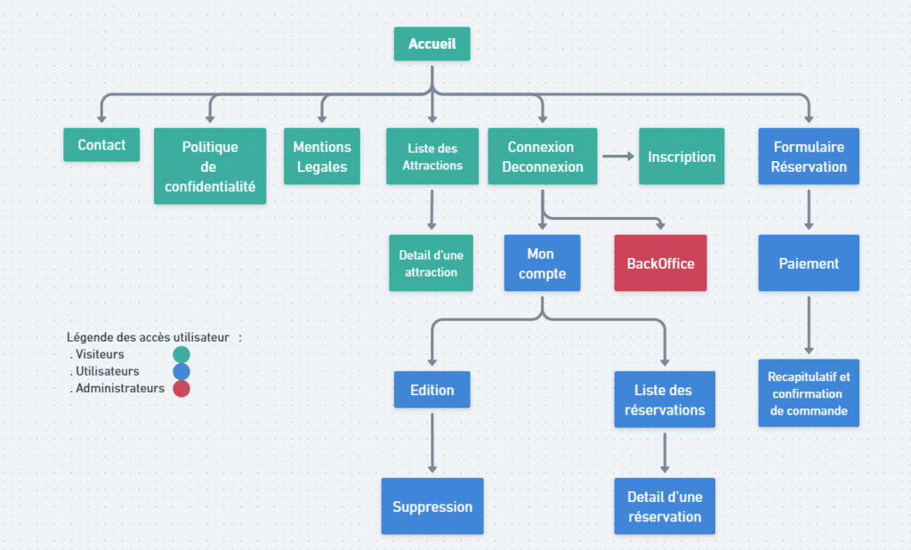 Pour la conception, nous avons déclinés les fonctionnalités en User Stories puis en diagrammes UML pour anticiper en amont du développement toutes les routes API et les URL nécessaires côté Back-end et Front-end. L’arborescence du site et les wireframes ont pu donc être détaillés dès cette étape.