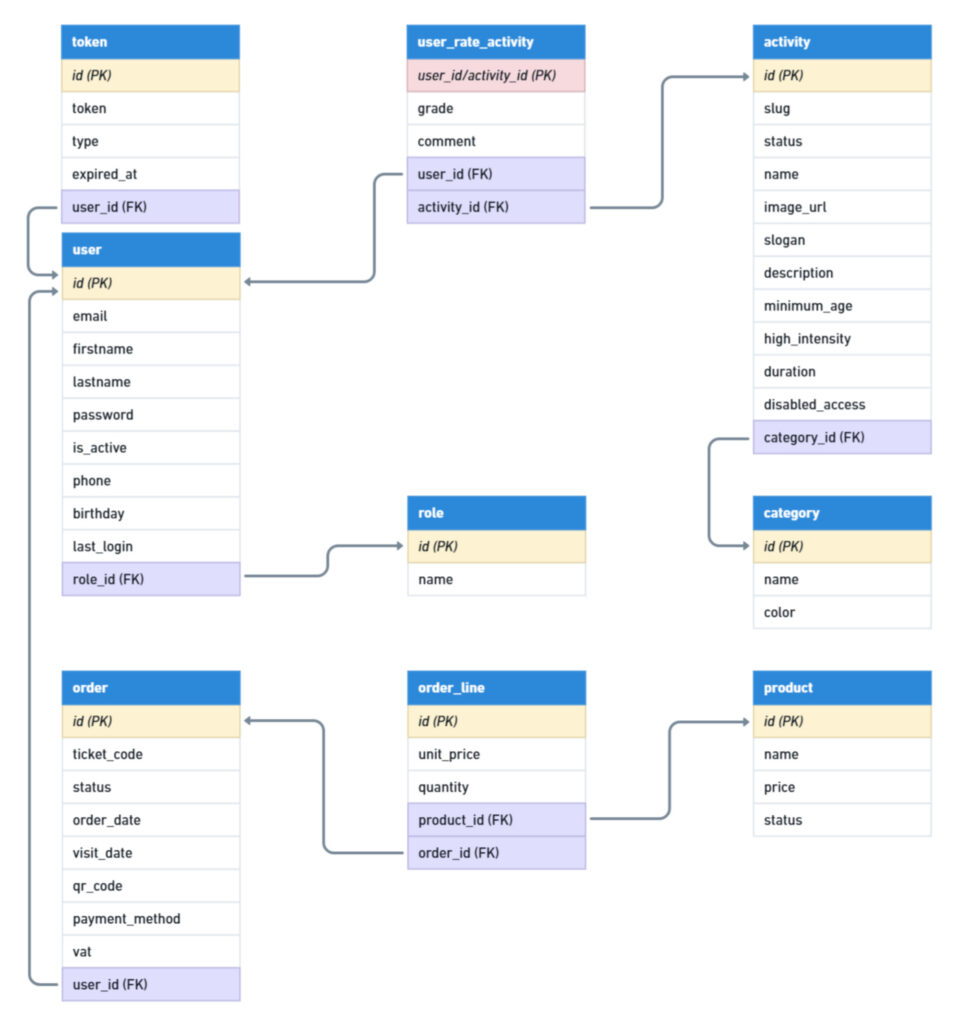 • Backoffice admin : gestion des commandes, utilisateurs, tarifs, activités et catégories