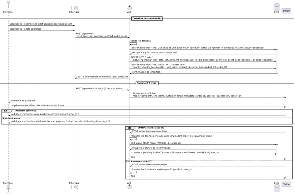 • Paiement sécurisé via Stripe + suivi des statuts via IPN
